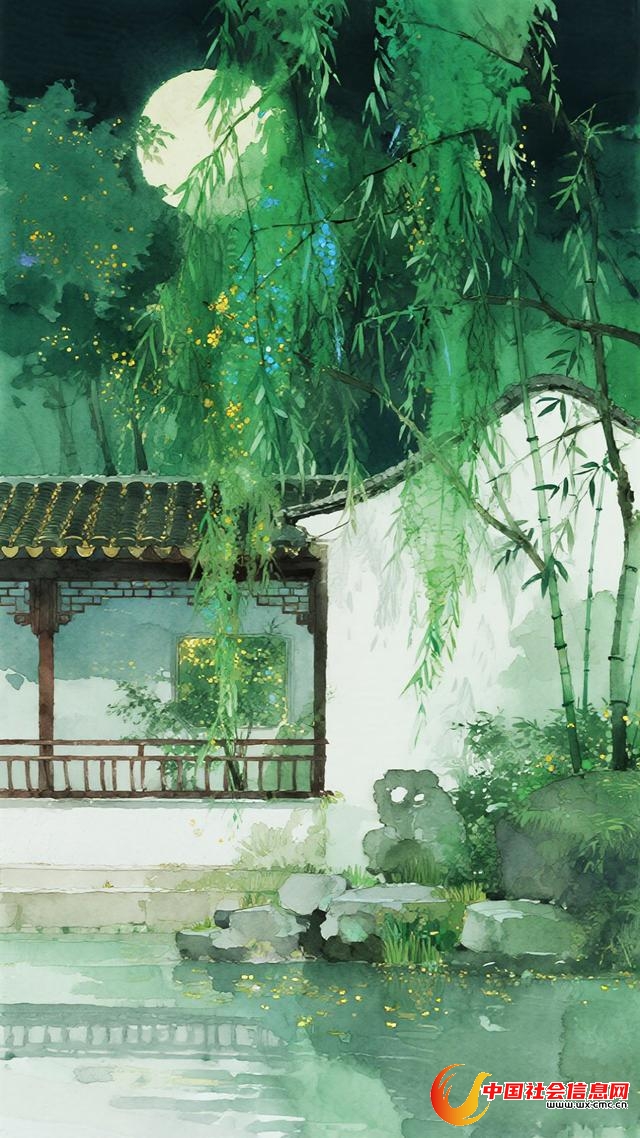 “夜热依然午热同”,起笔就道出夏夜的闷热难耐。诗人辗转反侧,最终推门而出,在庭院中寻得一方清凉。古人没有现代科技,却懂得向自然借取凉意——陆羽将新茶悬于井中冰镇,苏轼卧看星河入户,都是对酷暑的应对。