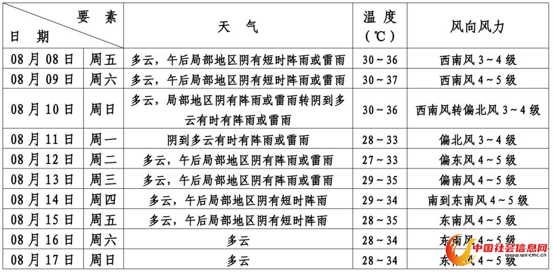 今天夜里到明天本区以多云天气为主,上半夜以前和明天午后局部地区仍可能出现短时阵雨或雷雨,明天最高气温37℃。西南风4—5级,沿江沿海地区阵风有6级。相对湿度90%—45%。体感闷热,注意防暑降温。
