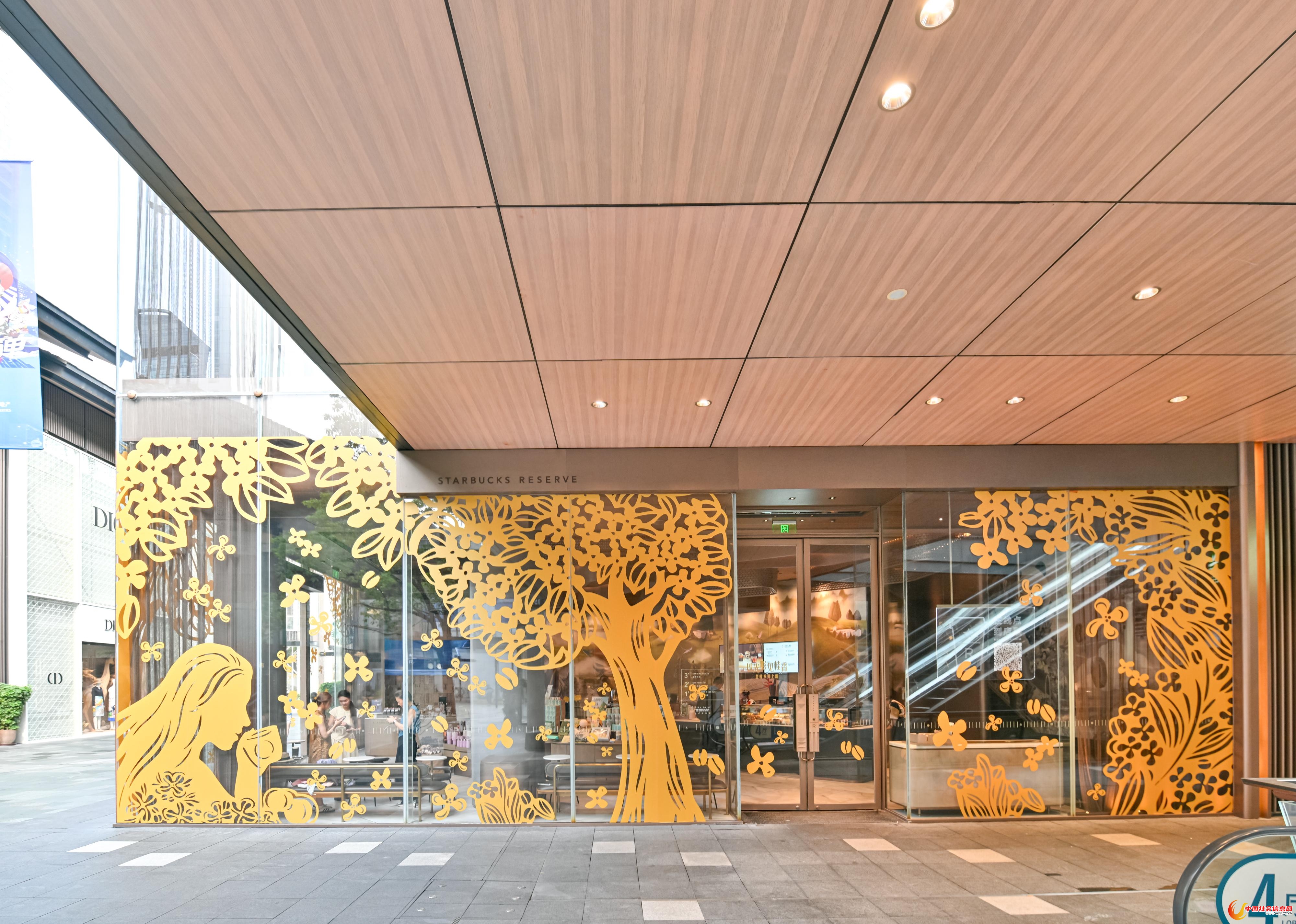 星巴克标志性的秋季风味——桂花,已如约而至。与以往不同的是,星巴克今年的金桂饮品不仅都添加了闻得到、看得到、尝得到的真实金桂,更有空间光影的氛围加持:全国8大城市的9家门店已换装为“金桂大赏”联动主题店,以雕花剪纸非遗技艺呈现的艺术装置,让桂花“开”进了星巴克的门店之中。星巴克成都太古里旗舰店是“金桂大赏”联动主题店之一,已吸引众多年轻消费者打卡。