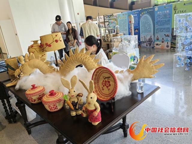 互动手工区,非遗海派旗袍高定品牌创始人叶青将钩针编结与3D打印结合,创作《鹳鸣东方·经纬共生》,并为参与者送上生态主题3D打印小礼物;非遗竹编传承人李海滔的《诸相非相》、宋代美学烫画艺术家王海宇的《百年外滩》《武康大楼》、药斑布植物印染传承人柳玉成的作品等,展现“道法自然”的传统环保智慧。此外,VR体验污水处理流程、野生鸟类摄影展、3D打印巨嘴鸟模型等,借助科技让公众直观感受环保工作的魅力。