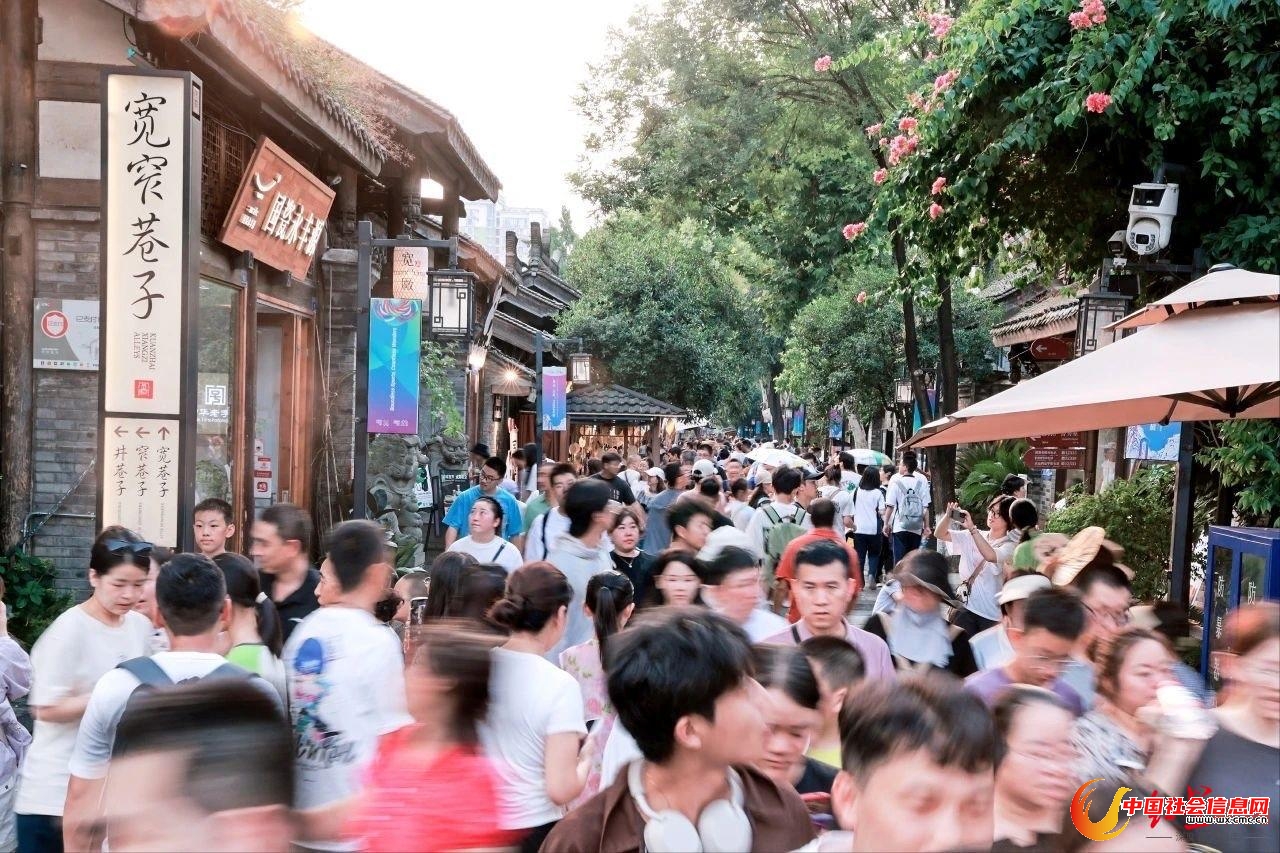 在地标宽窄巷子,也迎来了暑期客流高峰。景区工作人员告诉记者,7月1日-8月31日宽窄巷子客流量约705万人,同比增长2.2%。在宽巷子23号院举办的“世运·天府”文化艺术展吸引近30万全球游客观展打卡。