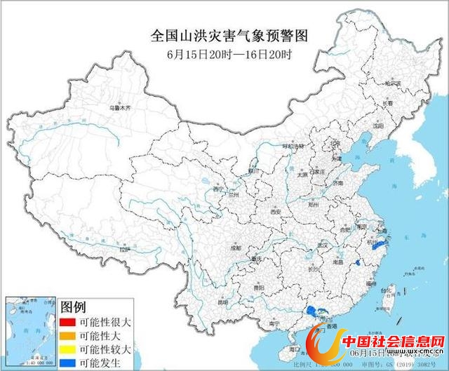 预计,6月15日20时至16日20时,浙江东部、江西东部、福建西北部、广东中西部等地部分地区可能发生山洪灾害(蓝色预警),其中,浙江东部、广东中部局部地区发生山洪灾害可能性较大(黄色预警)。其他地区也可能因局地短历时强降水引发山洪灾害,请各地注意做好实时监测、防汛预警和转移避险等防范工作。