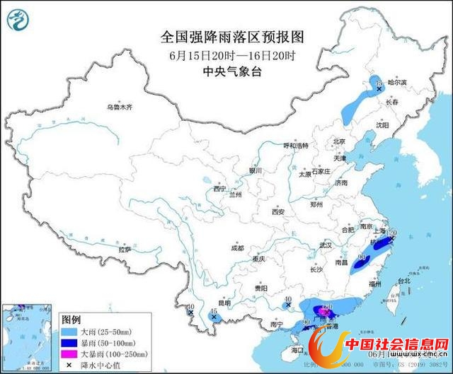 中央气象台6月15日18时发布暴雨蓝色预警: