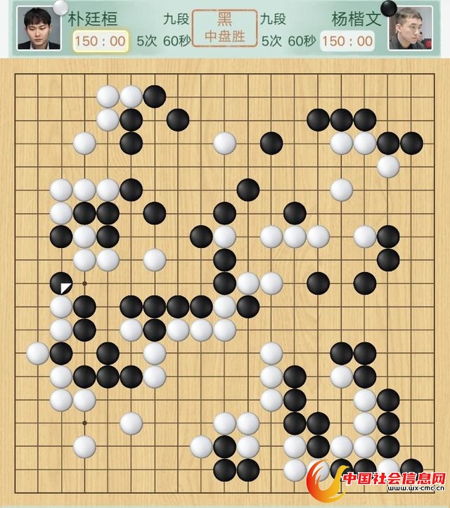 为了翻盘,朴廷桓选择强杀左边浅消白阵的数颗黑子,但杨楷文招法凌厉,抓住白112的缓手,黑113敏锐扳下,造出生死大劫。此时,右上和右下劫材丰富的黑棋已奠定胜势,白大龙只能自断尾巴,至157手,朴廷桓推枰认负,杨楷文执黑中盘胜出,取得1比0领先。