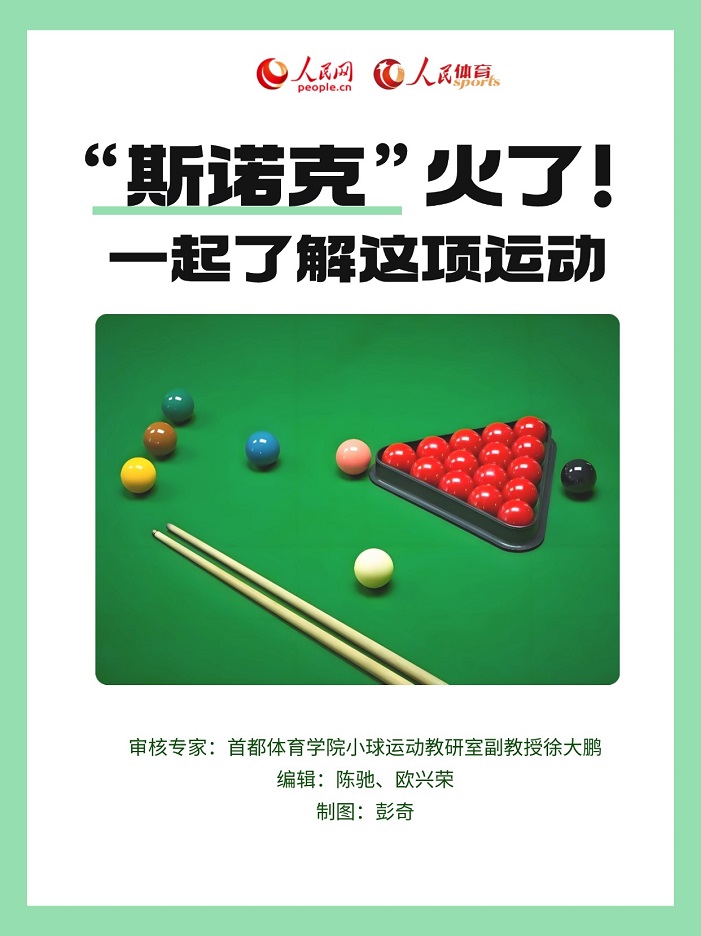 日前,中国选手赵心童在斯诺克世锦赛决赛中,以18比12战胜威尔士名将威廉姆斯,成为中国乃至亚洲首位夺得斯诺克世锦赛冠军的选手。随着他的夺冠,全国各地掀起一波斯诺克热潮。关于斯诺克运动,你知道多少?它的器材和规则是怎样的?有哪些专门术语?它和普通台球有什么区别?跟着人民体育来快速了解一下吧。
