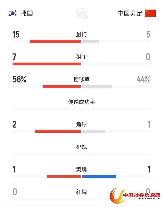 之后,国足虽然由替补登场的韦世豪、塞尔吉尼奥创造了一些得分机会,但无法转化为进球。全场比赛,韩国队15次射门7次射正3次破门,国足5次射门0射正0破门,数据是双方实力最好的体现,国足只能接受0比3落败的现实。
