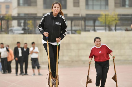 从上学时,柔鲜古丽就热衷于参与各项体育活动。无论是篮球、排球还是最擅长的高脚竞速,她总会挤出时间报名参赛。她说,体育就像一道光,多年来照亮了大漠边缘的生活。“它不仅可以锻炼身体,也能舒缓我在生活中遇到的压力。”