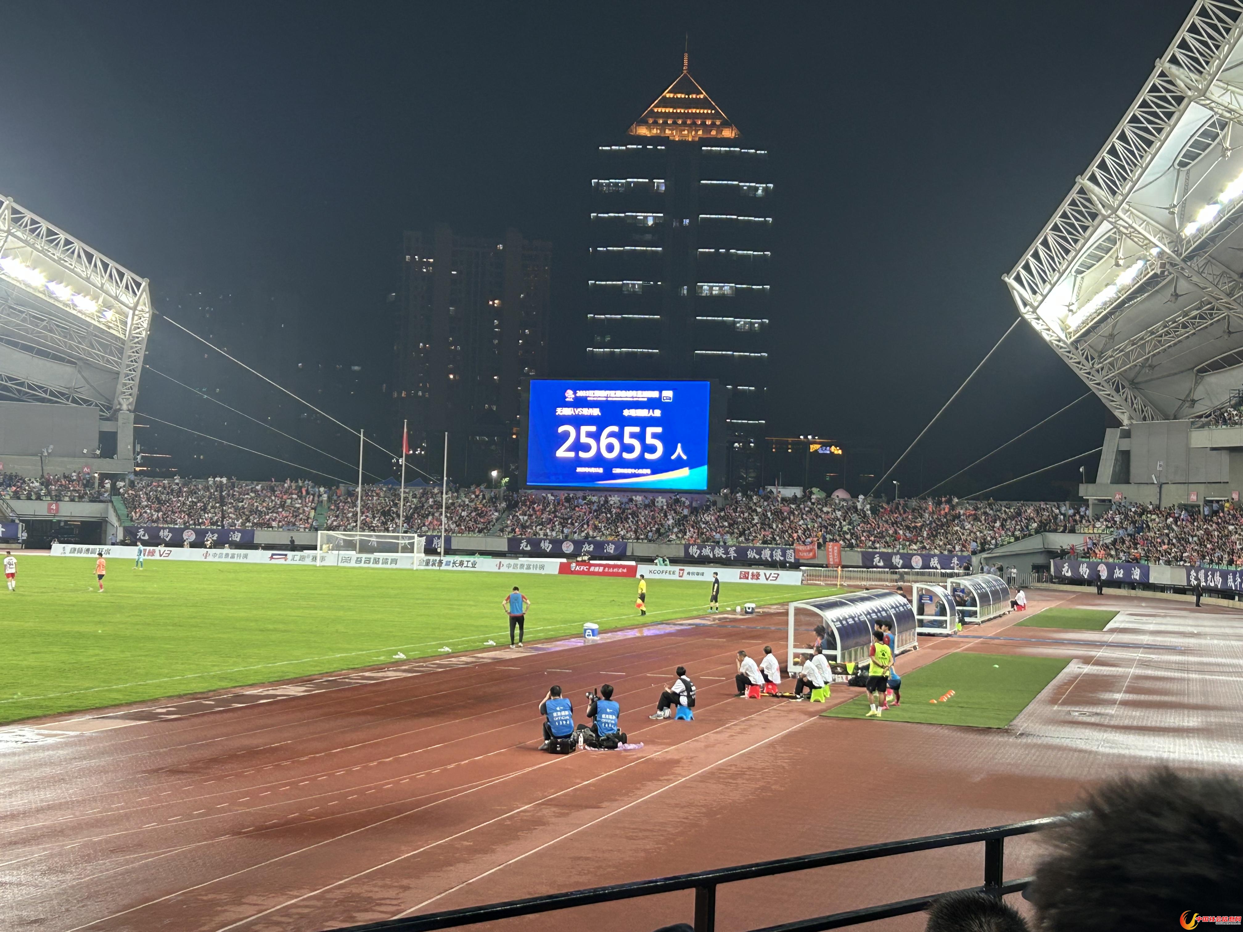 据现场大屏显示,本场比赛共有25655人现场观赛。