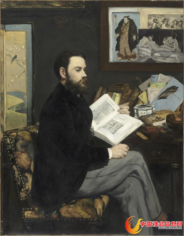 19世纪延续到20世纪五六十年代,艺术家作家结成团体、共同讨论、相互激励。比如马奈与德加重视“人物形象”的表现,他们的作品在同一个空间中并置展出。马奈有一幅描绘作家左拉的肖像作品。左拉欣赏马奈的真诚和现实主义倾向,他认为,自己的小说理念与马奈的绘画理念之间,有着深刻的亲近感。而马奈的这幅肖像画,也传达出了左拉作为作家的精神面貌——那个宽阔而明亮的额头。