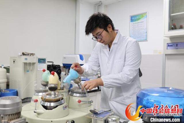 潘志威在学校陶瓷器考古实验室使用研磨器。赵晓 摄