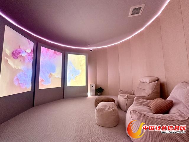 “一平米博物馆”空间虽小,但音乐与色彩所营造的氛围感染了参加揭幕仪式的嘉宾。《晨曦之光》以温暖流动的橙红影像与人声引导,唤醒观者内在的行动能量。《幽蓝之梦》营造静谧深远的幽蓝空间,舒缓焦虑,锚定心灵。其螺旋而上的空间设计,灵感源自海螺内旋的优雅轨迹,隐喻一场由表及里的心灵探索,为观众开辟了一处修复内在秩序的宁静港湾。