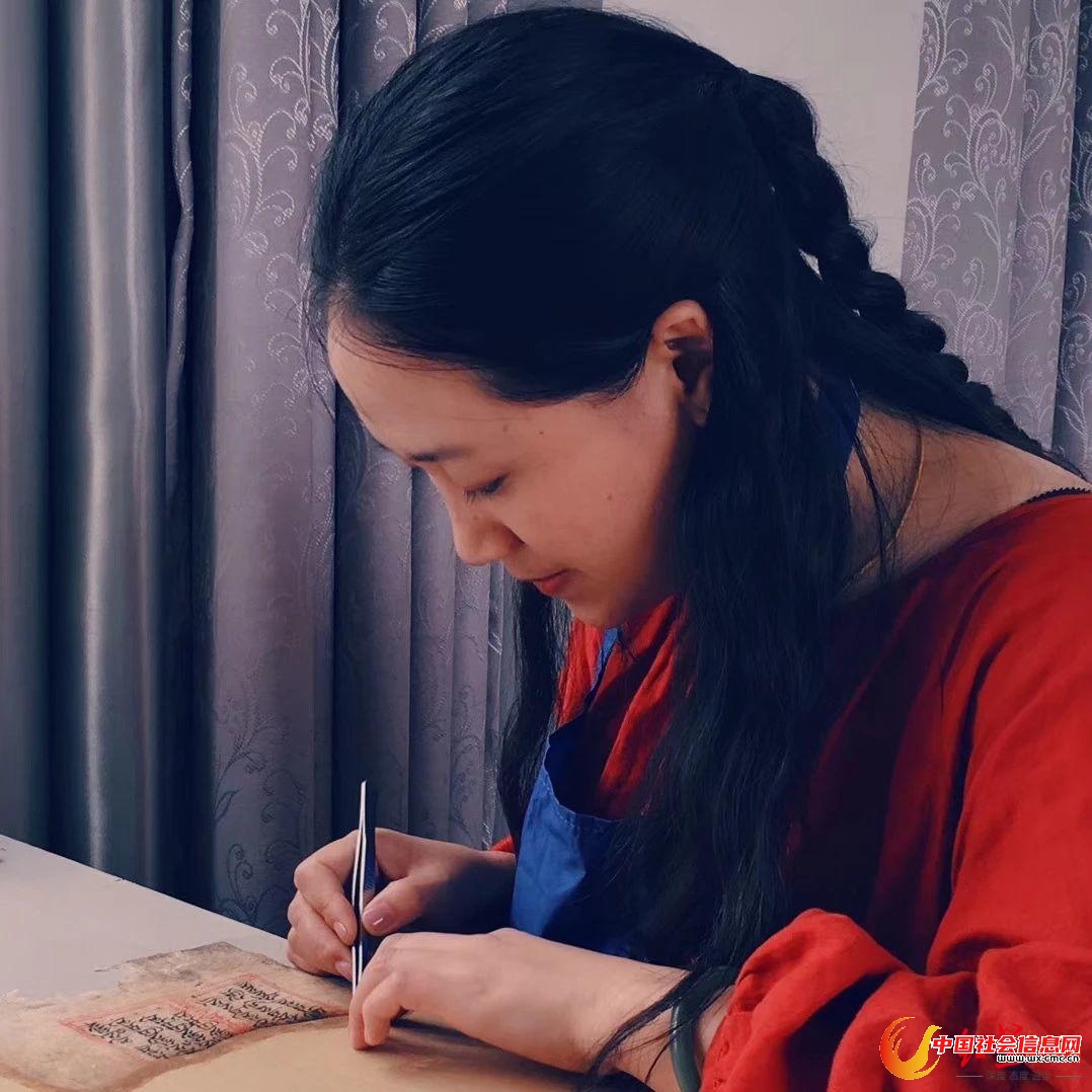 2016年,诺日卓玛来到成都,成为四川省图书馆古籍修复团队的一员。她的师傅是省级非遗代表性传承人袁东珏,给她的“入门考”是修复清道光年间的《武攸林氏族谱》。