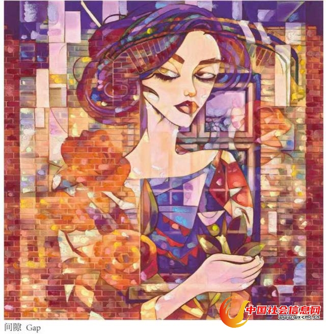 《琉璃》则通过晨光穿透拱窗的瞬间,构建出城市日常的诗意隐喻。画中女子手持白玫瑰倚窗而立,琉璃材质的透光性与不可穿透性形成微妙张力,恰如都市女性在保持开放心态的同时,又守护着内在的坚韧边界。