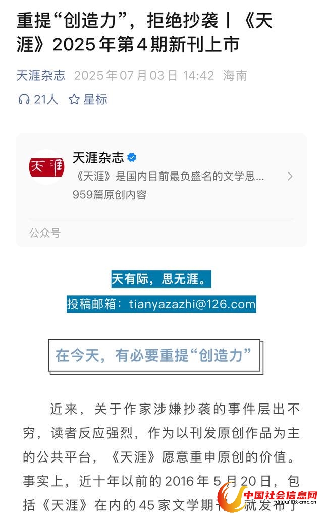 《人民文学》杂志社表示“将把社会监督作为做好工作的动力”