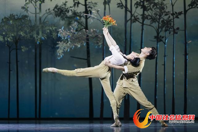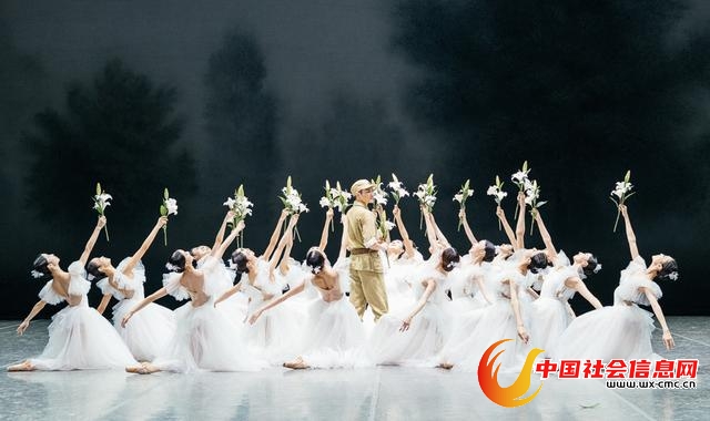 在精心构筑的倒叙时空里,舞剧开篇从中年“大姐”的回忆切入,通过交错的现实与记忆空间铺展青春叙事。跟随配音演员丁建华讲述的画外音,观众在一幅幅从1946年秋天走出的鲜活人物群像中,仿佛触摸到了历史的温度。舞台空间被回忆的潮水浸染,在战火中永远定格的面容逐渐浮现,巧妙的编排让现实与回忆在这一刻完成了转换。上海芭蕾舞团艺术总监辛丽丽表示:“《百合花》以海派芭蕾的独有风格赓续上海红色文脉,用国际视野下的创作弘扬城市精神品格,作品重现战争岁月年轻一代的青春、热血、信仰、梦想。”