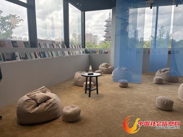 在玻璃窗印出的菩提树影下,举头望见千年古塔的身影,书香与创意香氛在阅读空间中融合。今天,“灯塔书房·黑爪”沉浸式创意香氛阅读空间在龙华会开幕。