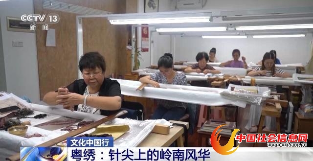 在广州市的粤绣传承基地——广州绣品工艺厂,一幅幅绣品佳作逐一陈列;其中不少绣品原画均出自当今岭南画派画家的画作。