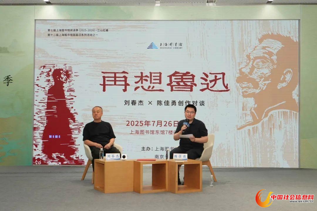 展览开幕式于7月26日在东馆举行。开幕式上,刘春杰向上海图书馆捐赠其鲁迅主题系列图书及两幅版画作品。随后,刘春杰与作家陈佳勇对谈,围绕鲁迅精神的当代意义与版画艺术的创作本质展开深入讨论。