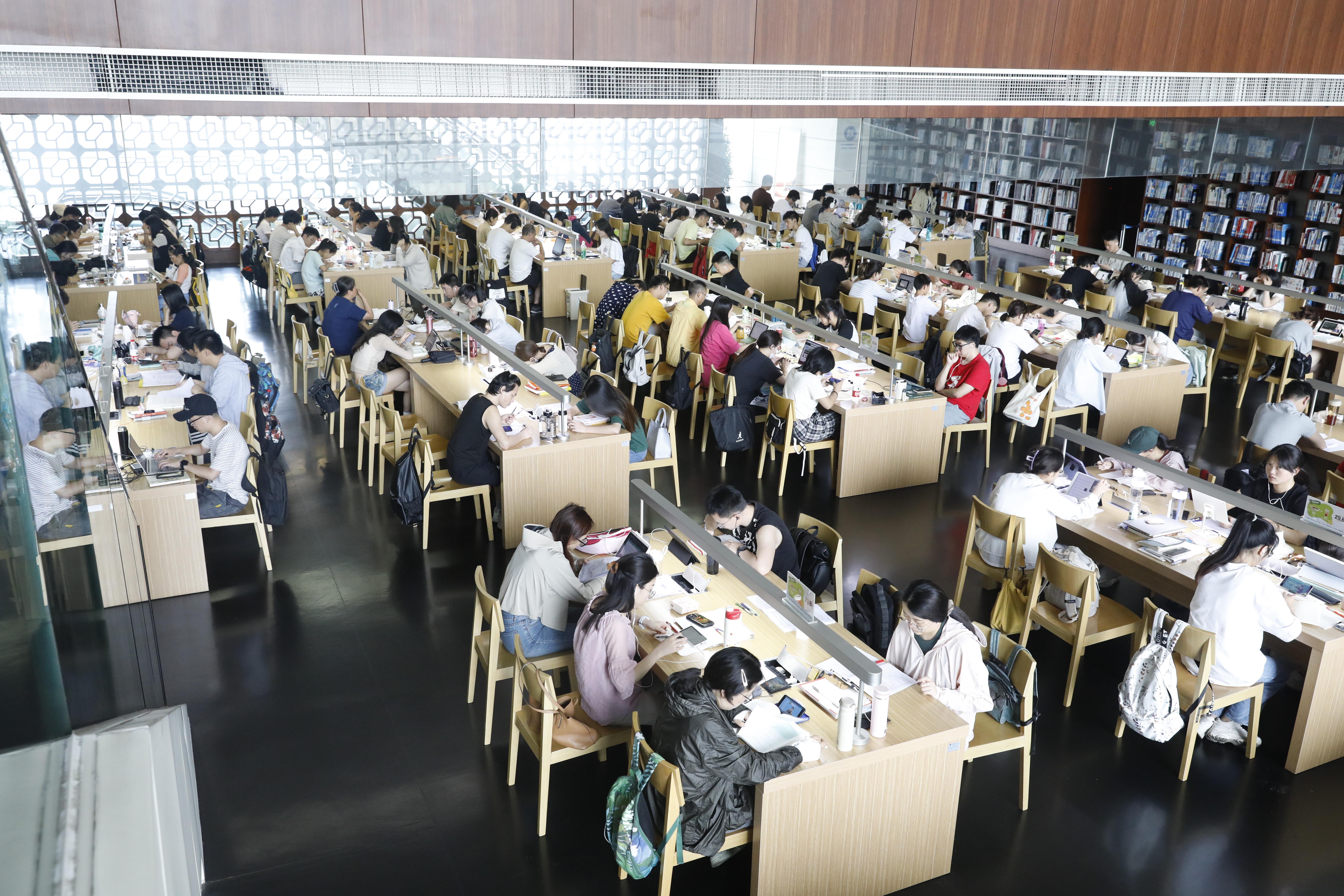 四川省图书馆内坐满了读者