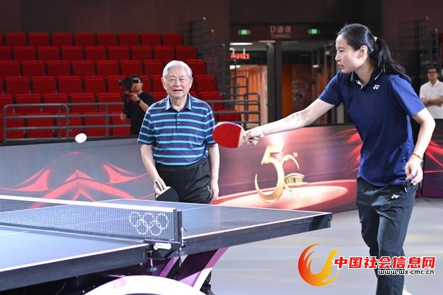 活动当天,徐寅生第一次在上海体育馆挥拍打球,他携手羽毛球世界冠军王仪涵,与国乒名宿曹燕华和青少年乒乓球爱好者代表来了一场混双比赛。拿起球拍,年过八旬的徐寅生依然身手矫健,不时给身旁的王仪涵创造进攻机会,赢得现场阵阵掌声。赛后徐老感慨:“万体馆承载我很多记忆,有关于乒乓球的,也有其他项目的,记得当年第一次踏进这里时,都不敢相信上海有了这样高规格的体育馆,一转眼这座场地已经50岁了,我也在这里实现了人生‘第一次’,希望在未来。它能见证更多中国体育的经典瞬间。”