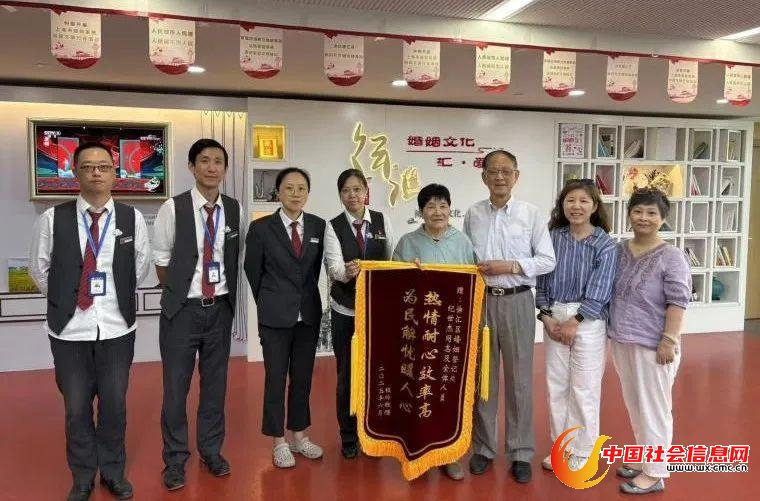 两面锦旗,无声地诉说着群众对婚登中心工作的肯定与信赖,也印证着中心全体职工始终如一的坚守。无论是为高龄老人排忧解难,还是为军人提供暖心服务,都把群众的急难愁盼放在首位,用行动践行民政服务的宗旨,让“小窗口”服务“大民生”。