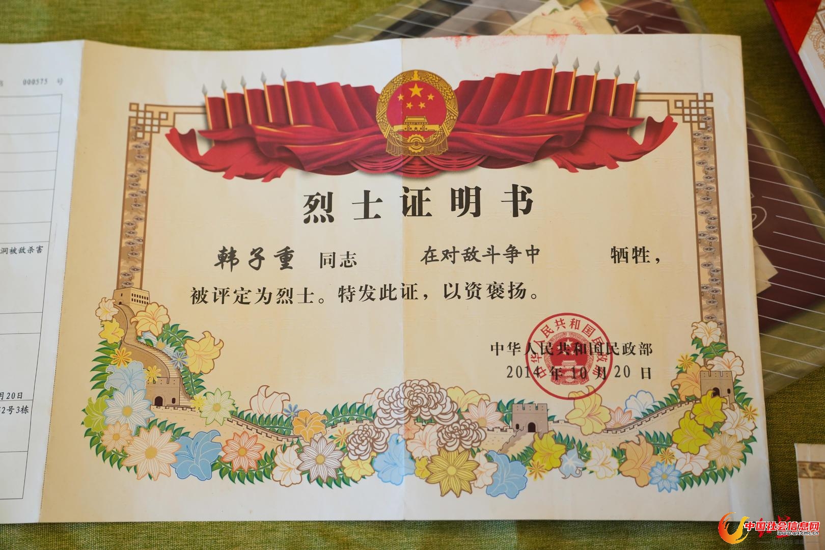 ▲韩子重外甥唐立凡捐赠韩子重先烈物品后收到的证明