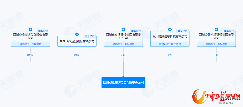 股东信息显示,该公司控股股东四川成渝(601107.SH)持股比例为85%,其他由中国华西企业股份有限公司、四川省交通建设集团有限责任公司、四川公路桥梁建设集团有限公司、四川高路信息科技有限公司分别持股10%、3%、1%、1%。四川省国资委为公司实际控制人。