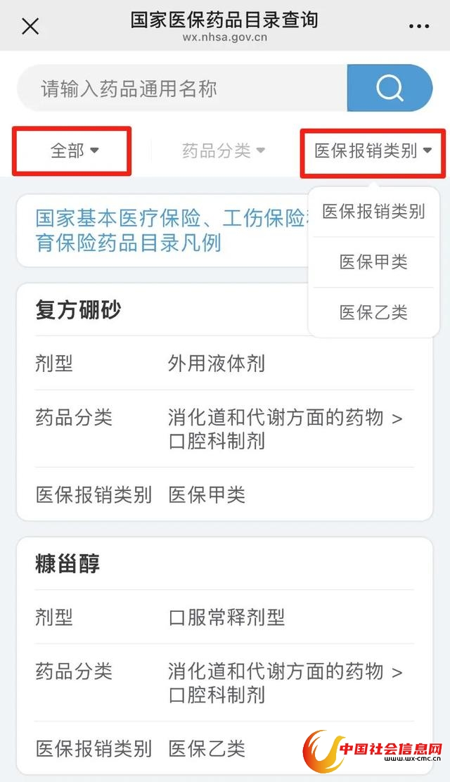 也可以根据自己的需求,选择“医保报销类别”等进行筛选。