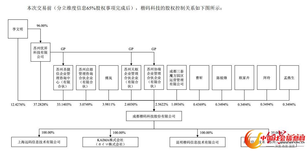 本次交易前(分立维度信息65%股权事项完成后),楷码科技的股权控制关系