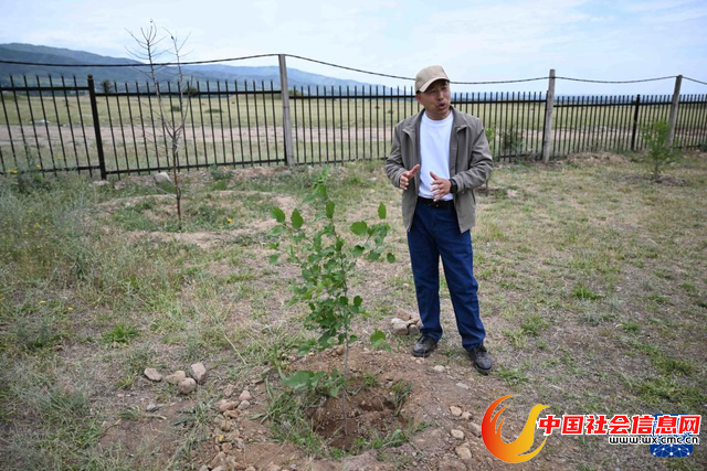 6月3日,在哈萨克斯坦伊塞克国家历史文化博物馆附近,丁岩介绍中哈联合考古队一起种下的山楂树。新华社记者 李任滋 摄