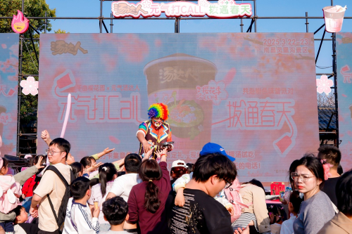 游客不仅可以赏花,还可以在汤达人元气高汤馆下,在樱花树下嗦一口元气高汤,体会汤达人带来的混日暖意。