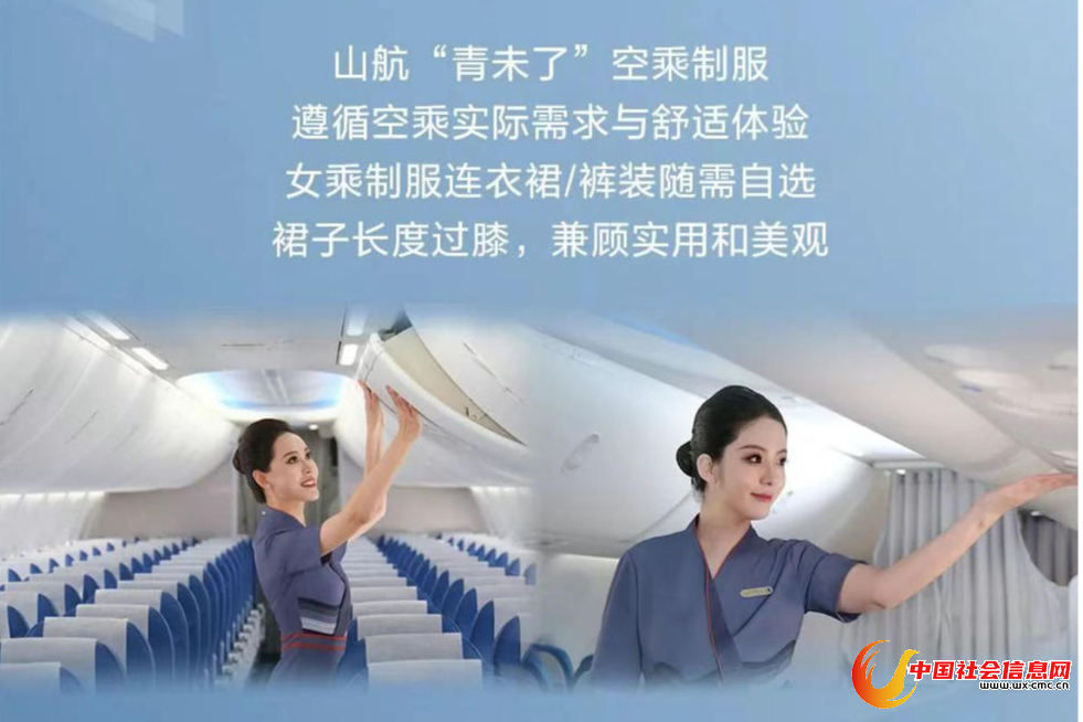 7月26日,山东航空新制服“青未了”亮相,新制服不仅融合了中国传统汉服元素,还遵循空乘实际需求与舒适体验,女空乘可自选裤装或过膝裙,轻便的平底鞋代替了以往的高跟鞋。