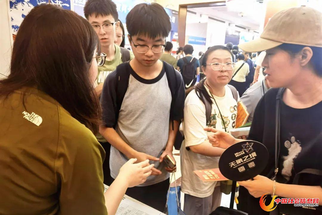 在热热闹闹的书展东一馆一楼,记者还遇见了老熟人“静宝”。原来,静宝正和“上海发布”一起“出摊”,送出静安乐购之旅专属船票、静安旅游线路手册、玩偶盲盒等一众文创好礼。