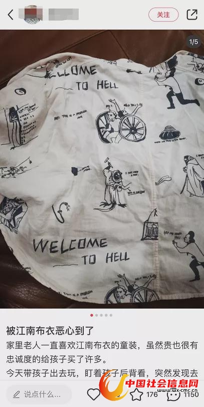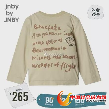 买过jnby童装的家长们,如今已如惊弓之鸟,拿捏不准、不懂得图案想要表达什么含义的都纷纷把衣服发到网上请大家帮忙看。