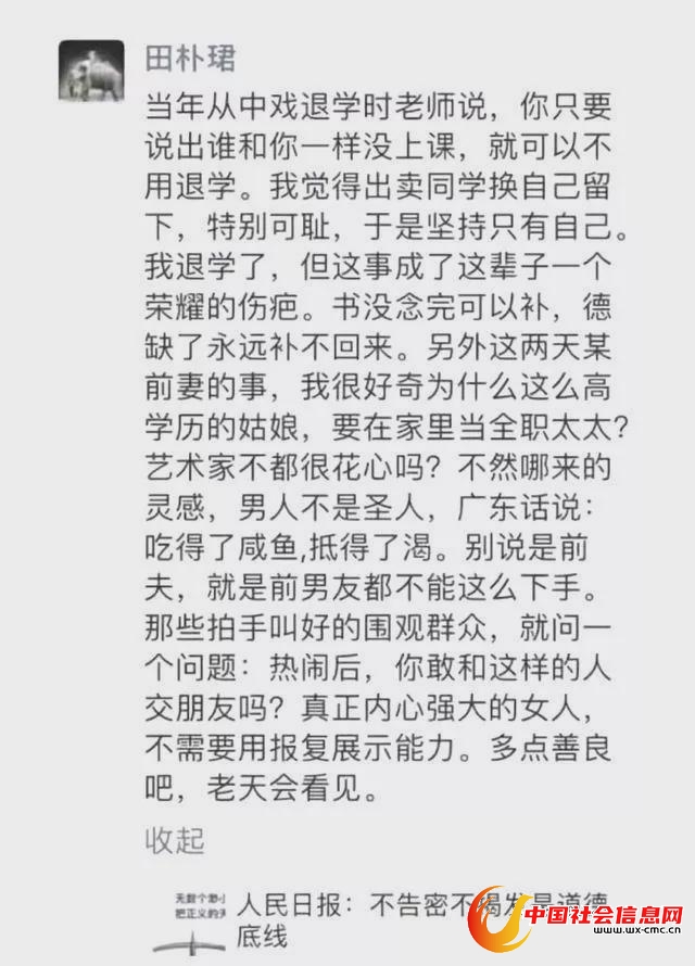 中戏没毕业,女德班我看她倒是以优异成绩完成了学业。男人不是圣人,所以他们可以花心。