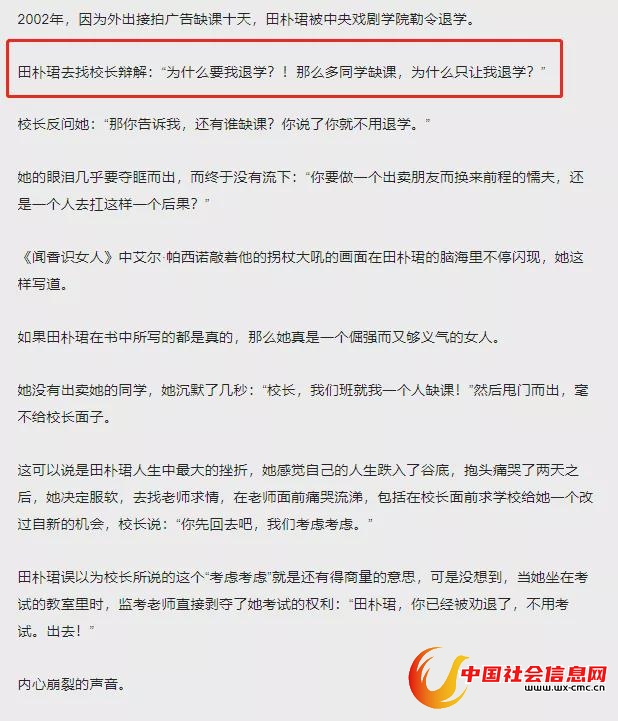 众所周知,田小姐就读的压根就不是导演系的本科班,而是分数和门槛都相对低很多的高职班。