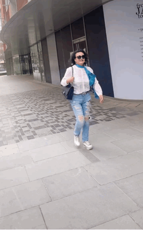 兰姐简单逛个街都要奢品傍身,地才蓝爱马仕丝巾 + 老朋友Chanel+ Hogan厚底鞋,更大方穿上年轻人爱的破洞裤,风风火火闯九州。