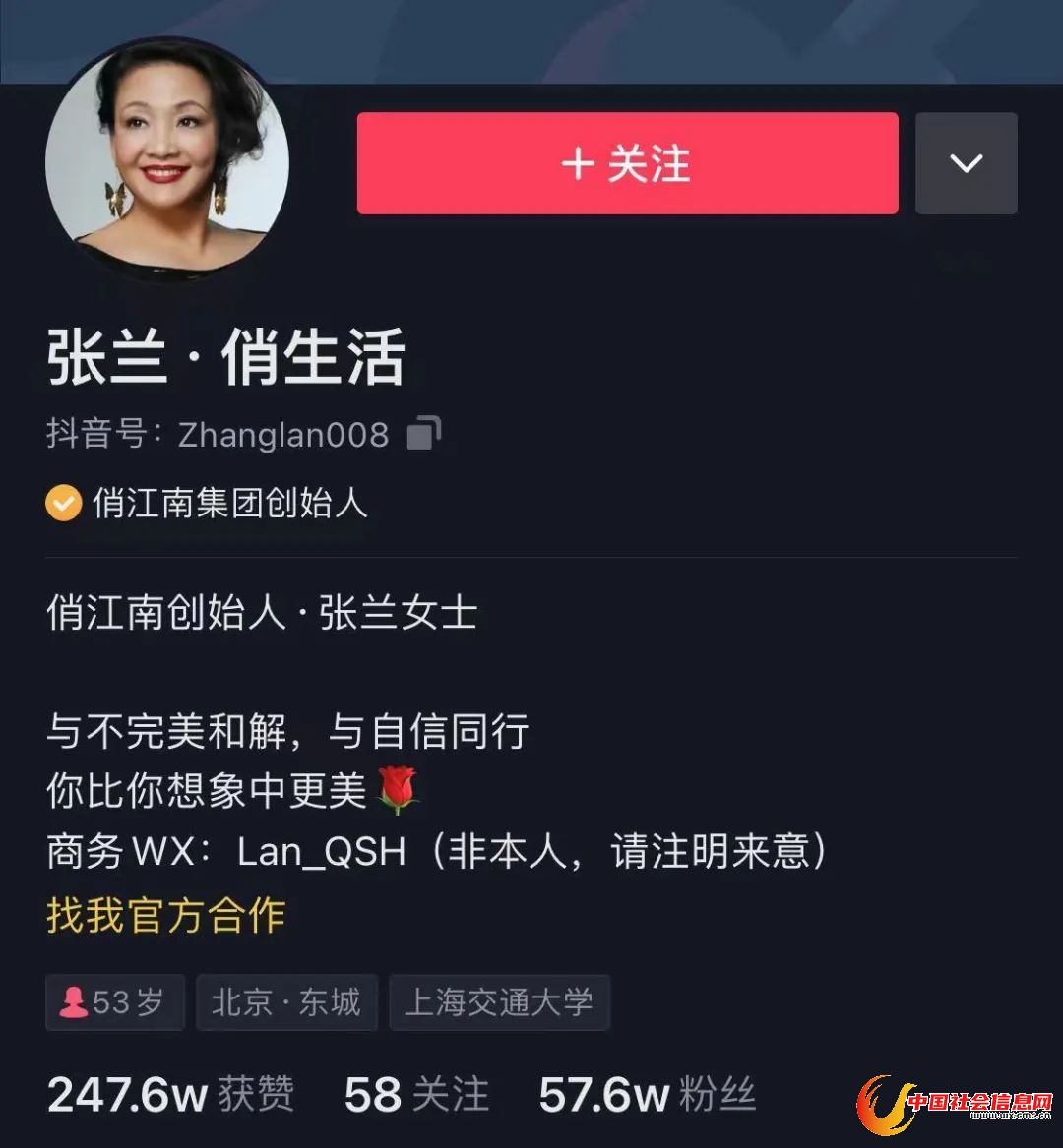 如今张兰已经卸任了俏江南董事长,但她也没有闲着,不仅投资了新餐厅,还紧跟时代做起了自媒体,在抖音一开就是两个账号。