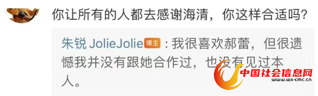 有人不满海清抢了原本属于郝蕾的光环所以跑去质问朱锐,朱锐坦言自己并不认识郝蕾。