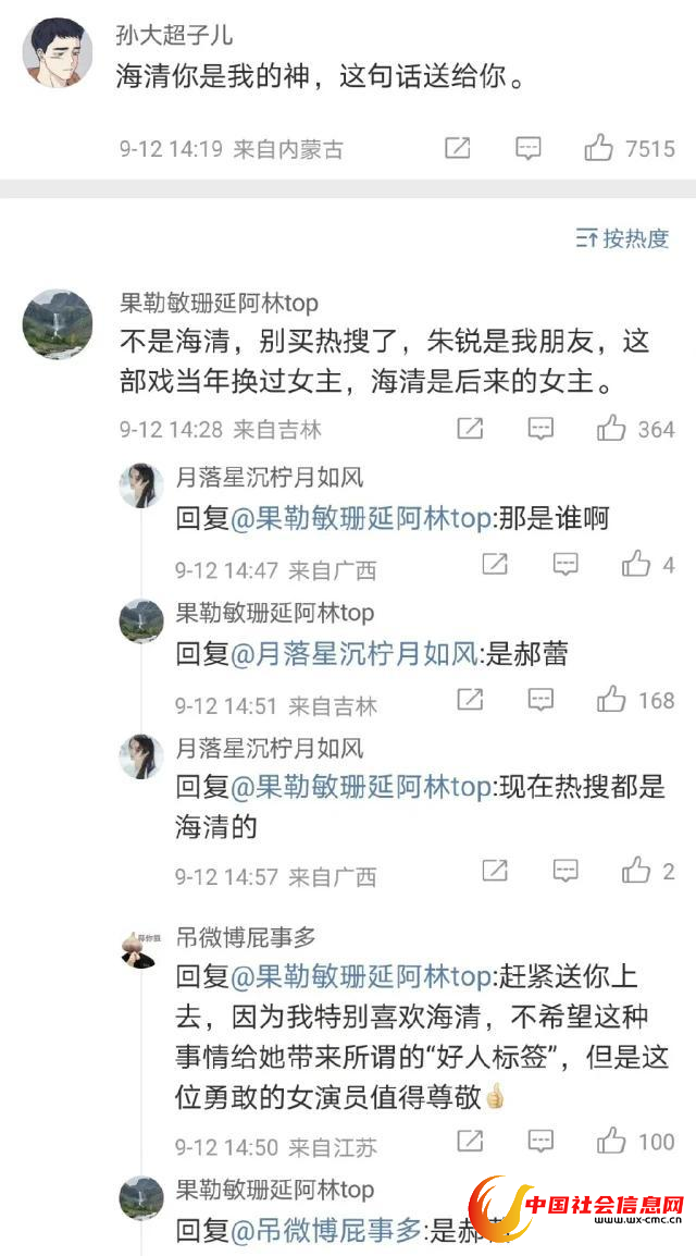 于是又有自称“朋友”的人在微博下留言,称女主角不是海清,是郝蕾,还说得有鼻子有眼。