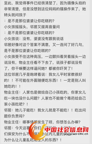 没想到这件事被女孩的妈妈知道了,不但没表示感谢和歉意,反而跑到业主群对贴主一家发难,不依不饶地质问到底是谁给自己女儿吃的蛋糕。