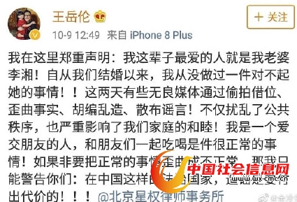 字不算多,信息量挺大,不但确认了离婚的事实,还内涵了李湘出轨在先,已经有了意中人,把自己之前的责任推得一干二净,言语中充满了茶味,,还顺便贡献了一条成语——茶言岳色。