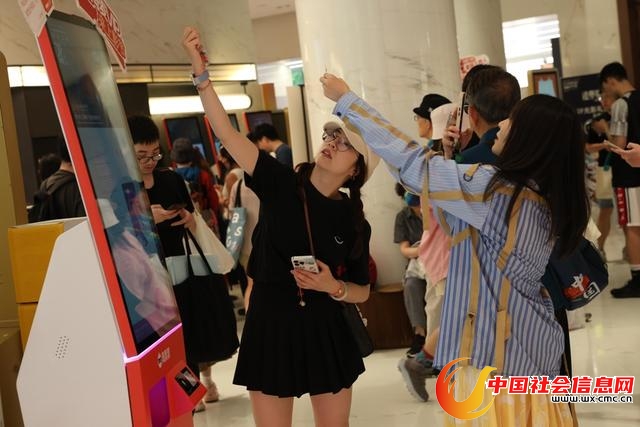 影迷在上海影城的电影节文创售卖区选购电影节文创。