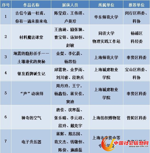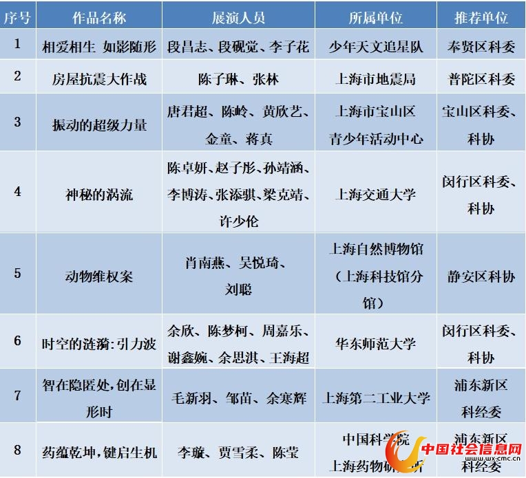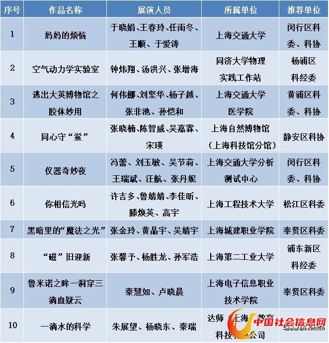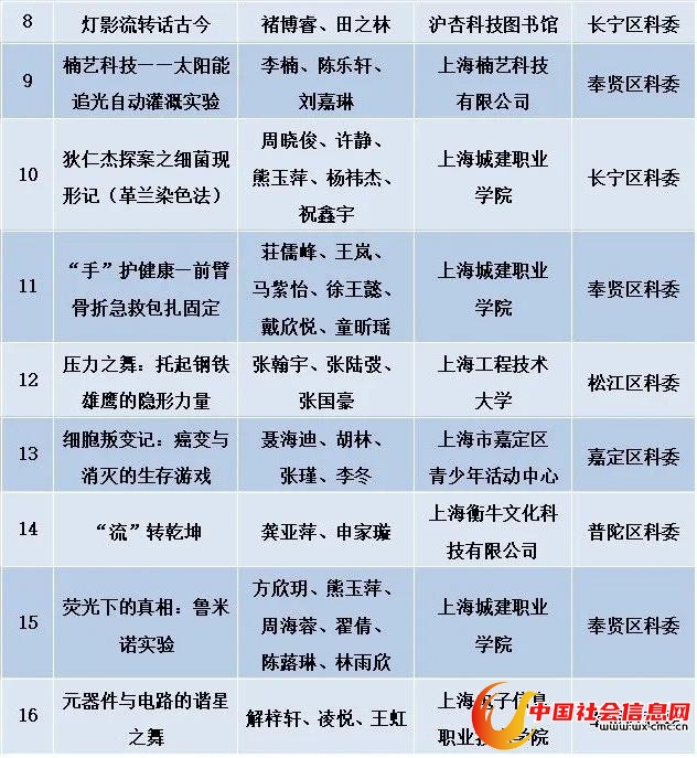 在各有关单位的大力支持下,2025年上海市科学实验展演汇演决赛圆满结束,共产生一等奖2组,二等奖8组,三等奖10组,优秀奖16组。现将获奖名单公布如下: